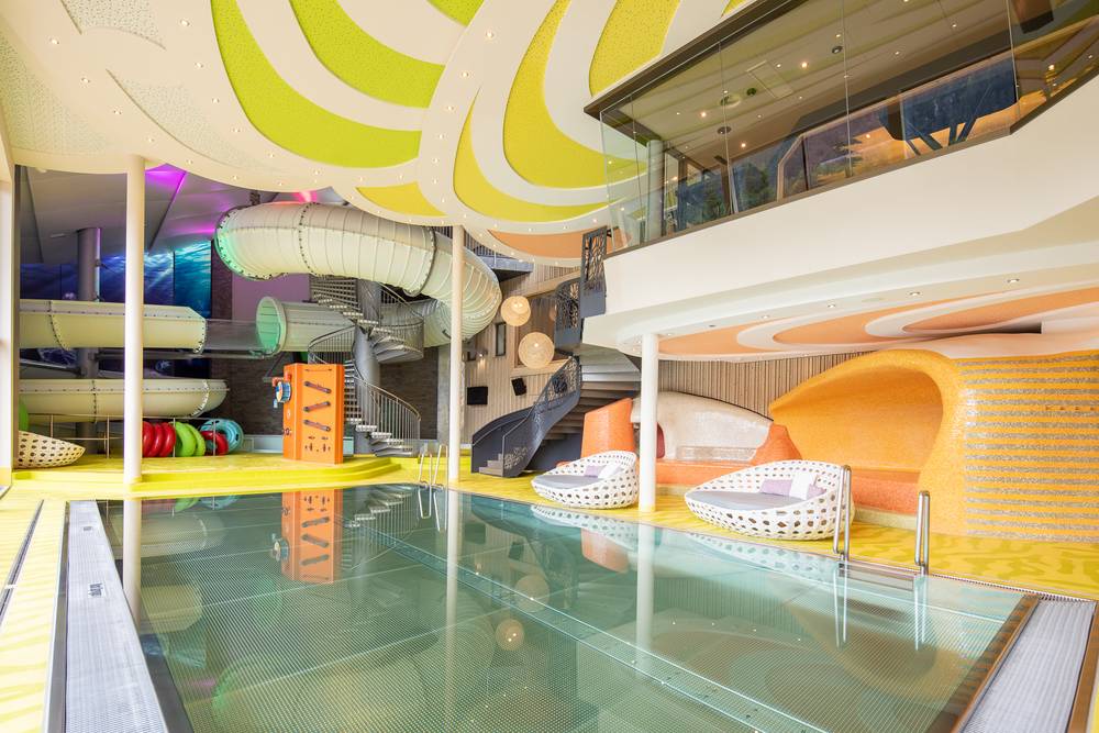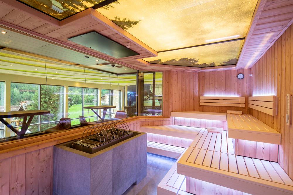 On over 5,000 sqm, you can experience top-class wellness. There are 11 saunas and 12 water areas available. From the saltwater pool to a mountain lake and outdoor whirlpool, as well as an outdoor sports pool and a swimming pool with a passage to the outdoors, everything is provided. While you swim your laps in the 25-meter sports pool, you can admire the breathtaking view of the Zillertal mountains. A unique experience! A separate family area offers a whirlpool, baby pool, sauna, steam bath, and a paradise of slides.