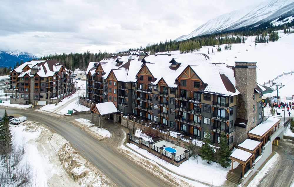 Located right at the valley station, in the Village at Kicking Horse Mountain Resort, is the Glacier Mountaineer Lodge. The two large buildings (Glacier Lodge and Mountaineer Lodge) are directly connected and offer modern accommodations with kitchen, open fireplace, balcony, and living room. Guests can enjoy stunning views of the surrounding mountains. After an exciting day on the slopes, outdoor hot tubs await for relaxation. Your car will stay in the heated underground garage for the entire vacation. The slopes are just a few meters away, and the gondola starts right in front of the building. Probably the best accommodation for a carefree holiday at Kicking Horse Mountain Resort.