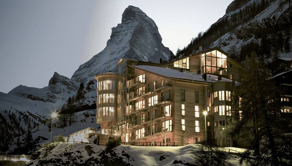 American lodge style · on a cliff in the centre of Zermatt