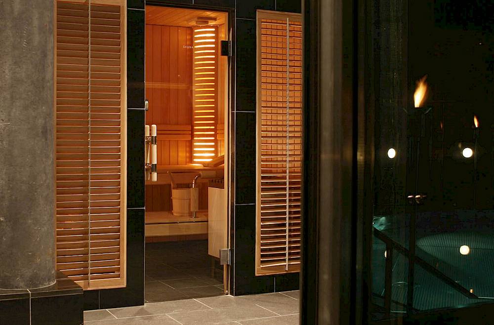 A true gem is the exclusive wellness area with its mystical atmosphere. It includes an indoor pool with torches and a passage to the outdoor pool, Finnish sauna, Turkish steam bath, caldarium, flower bath, relaxation room, and a perfectly warm outdoor whirlpool with views of Zermatt and the Matterhorn. Drinks are, of course, served in the spa upon request.