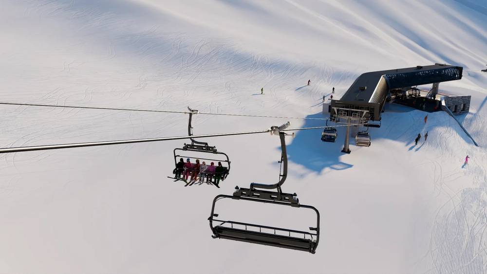 Combined installation (6 pers. chair and 10 pers. gondola) with seat heating