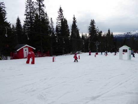 The children's area in Rödkullen features a conveyor belt and several button lifts. On the easy slopes, little ones can practice wonderfully. There are fun figures and a toboggan hill.
