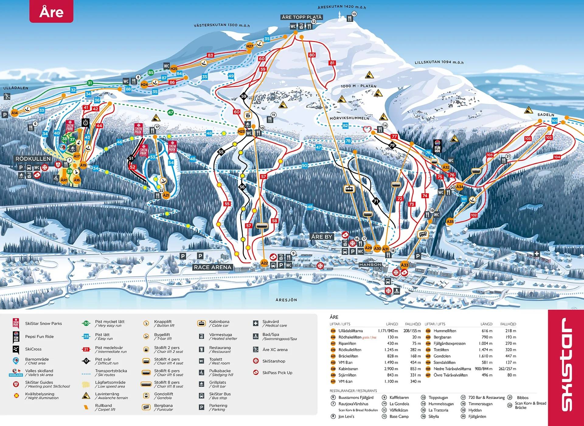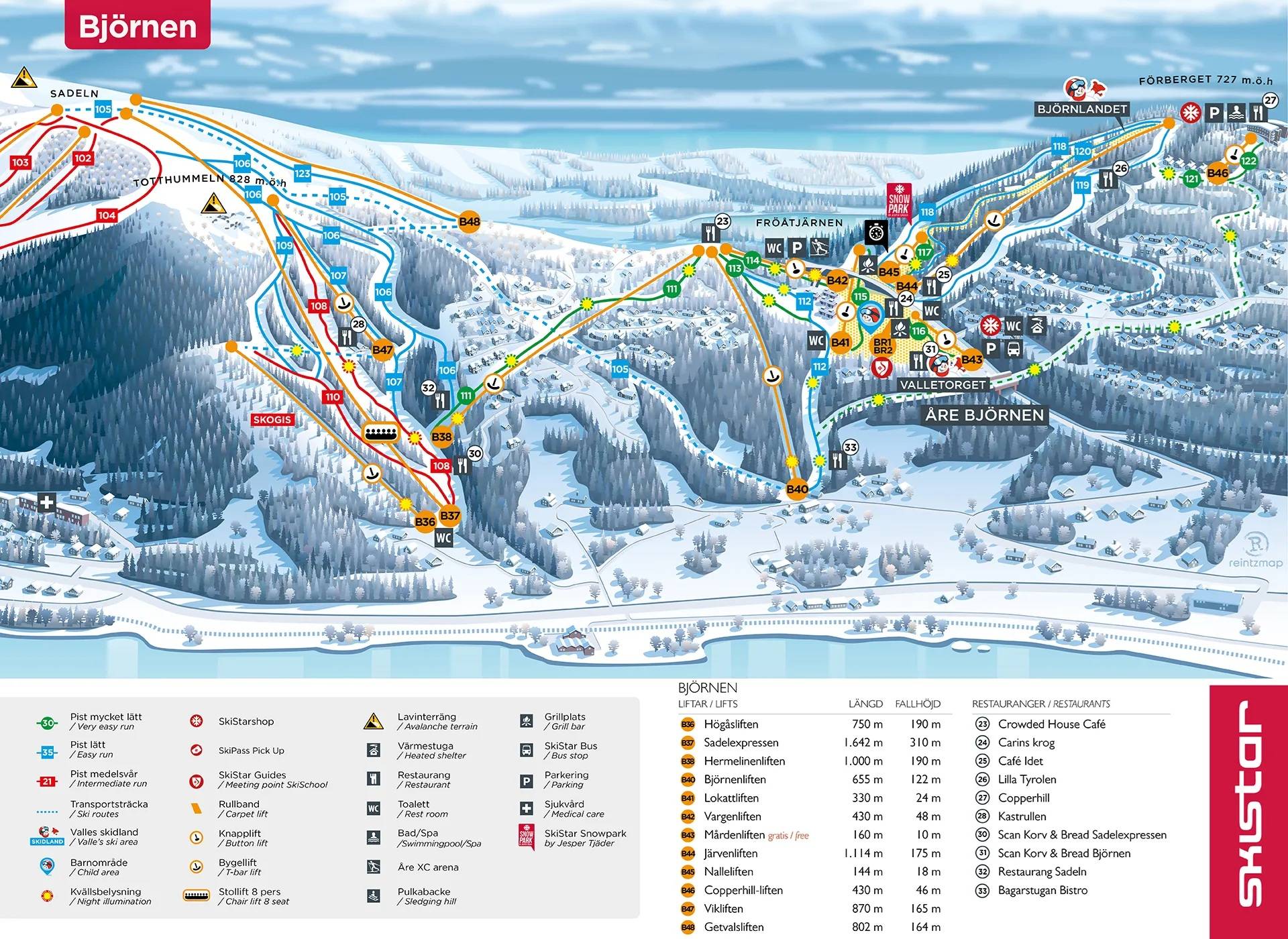 Åre (0.2 km), Björnen (0.2 km), Björnänge (4 km), Duved (8 km) Towns/villages at the ski resort