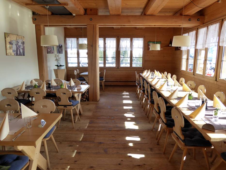 The rustic Chumihütte offers, in addition to the small and cozy Sennästübli, a large sun terrace. Here you can enjoy Swiss specialties, plenty of sunshine, and very warm service.