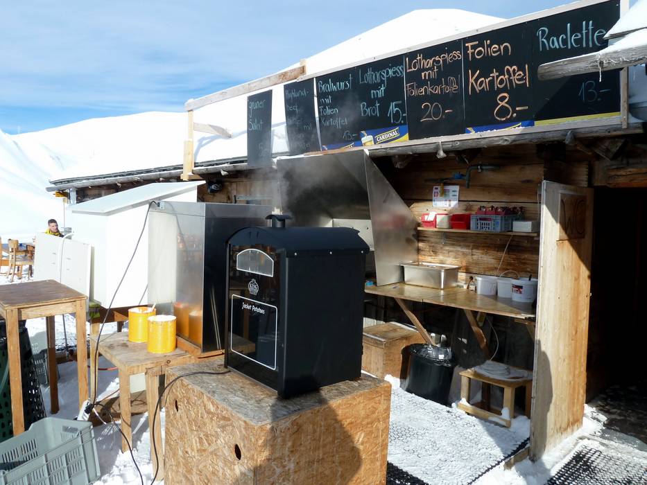 In Chüebodmi, the cows are in the barn during summer, and in winter, it's a place to stop for a break. The owner, Peter, married Yasuko from Japan, so fresh sushi is now served on the slope. Japan meets Switzerland. Of course, Swiss specialties are also available. On sunny days, the sun terrace awaits.