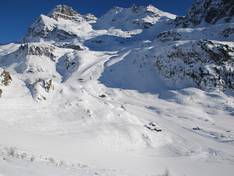 Slope above Champoluc in the Val d'Ayas View from the Contenery slope towards Col… The 4000-meter peaks of Monte Rosa shape the…
