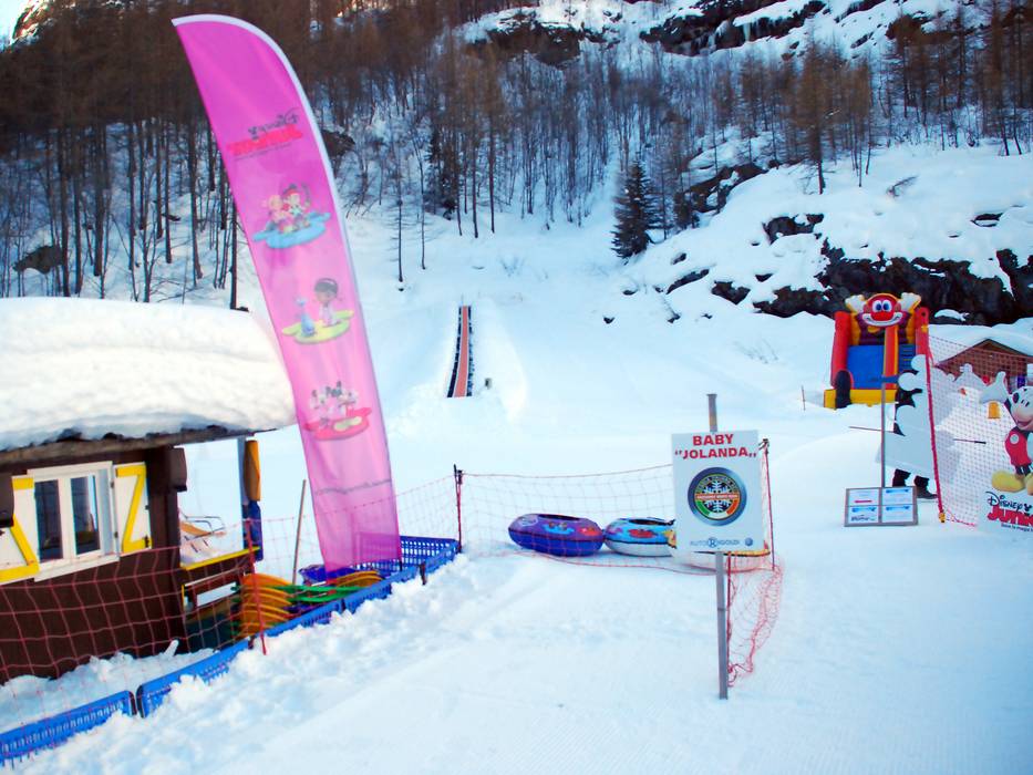 Children up to 8 years old do not have to pay for a ski pass when accompanied by an adult, and children's areas can be found throughout the ski resort. The one in Stafal features a conveyor belt and is also available for childcare. In Gressoney, the children's area is located opposite the valley station of the Punta Jolanda chairlift. In Alagna, the children's area can be found in the Wold district, about one kilometer above the valley station of the gondola lift. The setup in Champoluc is perfect, with a play area right in the middle of the ski resort and a practice area located right next to it. Toboggan runs are available in Ciarcerio (with conveyor belt) and in Stafal. You can also go sledding or snowtubing in the Baby Snow Park in Gressoney.