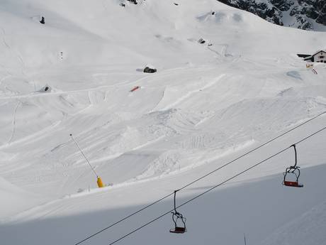 The 300 m long fun park in Gabiet is served by its own chairlift and features 14 rails, 6 jumps (3 to 15 m), and 2 table jumps as well as 2 fun boxes and a beginner area.