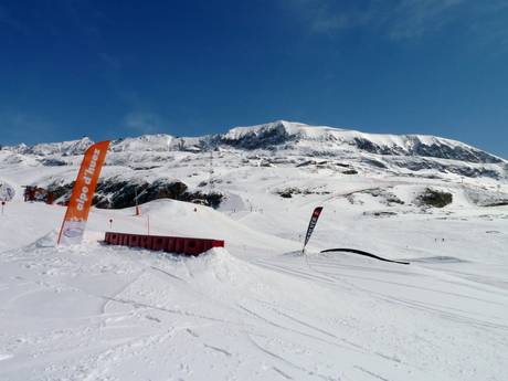 The Snowpark Alpe d'Huez leaves hardly anything to be desired: rails, boxes, three big air lines of varying difficulty levels, and a bag jump. You really have to try hard to get bored here.