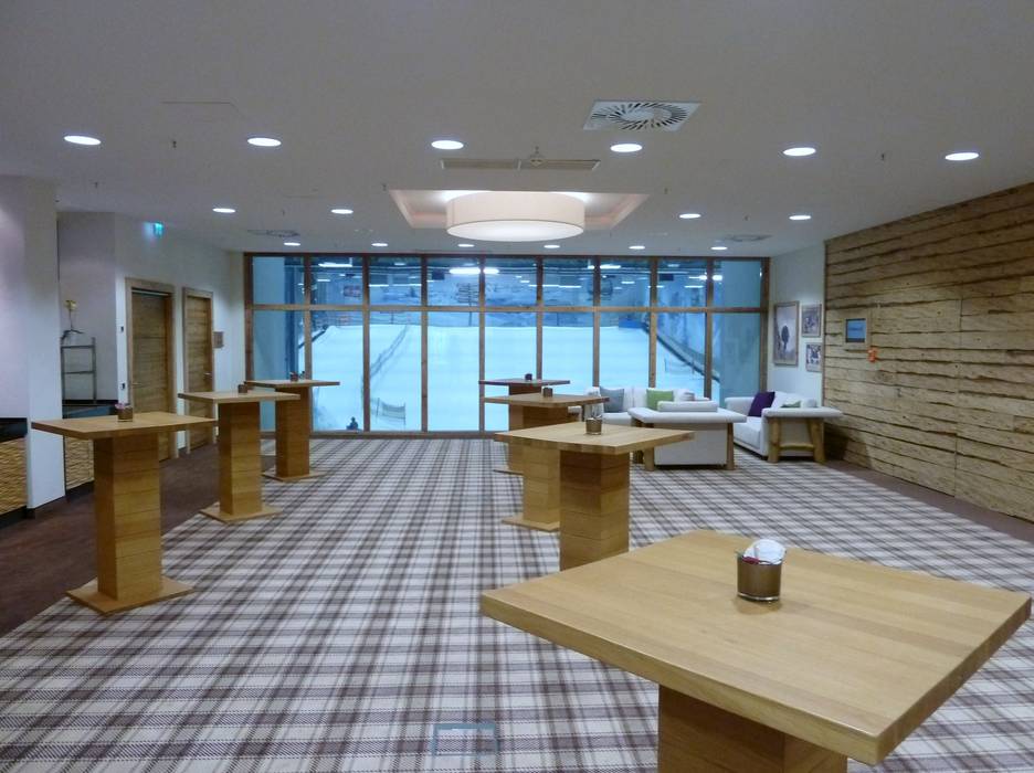 Since September 2011, the 4-star superior Hotel Fire & Ice has been open. It is located directly on the slope of Alpenpark Neuss. The sports and conference hotel with 79 rooms offers, among other things, 13 themed rooms and suites that take you on a journey through the most beautiful mountain regions of the world. From Himalaya, Kilimanjaro, Rocky Mountains, Aspen, Hochkönig, Bavaria, Mozart, Alpenglühn, all the way to the top suite, the Fire & Ice Suite, with 100 m² of luxury and a magnificent view over the Lower Rhine. A direct sauna view of the powder snow slope is included. The mountain breakfast is served right at the foot of the Neuss Glacier. Over 1,000 m² of conference space with 13 seminar rooms of various sizes and state-of-the-art equipment also make the hotel attractive for meetings. Since the end of 2018, 22 extraordinary BaumChalets have complemented the accommodation options at Hotel Fire & Ice in Alpenpark Neuss. The BaumChalets, with the comfort of a 4-star superior hotel, are nestled in the existing forest right next to the Skihalle Neuss. Further accommodations can be found in nearby Neuss.