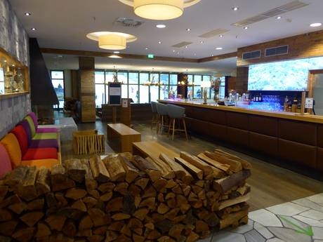 In the Pistenlounge, you can relax and unwind after a day on the slopes. With a perfect view of the slopes, the bar or the open fireplace invites you to linger.