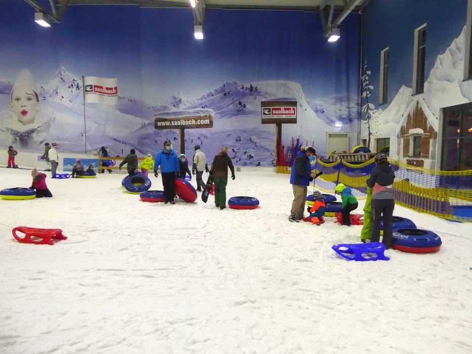 A highlight is the toboggan and tubing run in Alpenpark Neuss. Here, both children and adults can whiz down right next to the slopes. The ascent is easy and convenient with the conveyor belt.