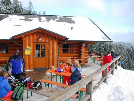 The huts are all quite small, offer a very limited selection of dishes, and the interior is not always up to date. None of them truly deserve the name mountain restaurant. However, if you make the effort to cross the road above the ski area, you will find very appealing restaurants in the village. The Astenkrone is particularly recommended for excellent dining.