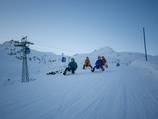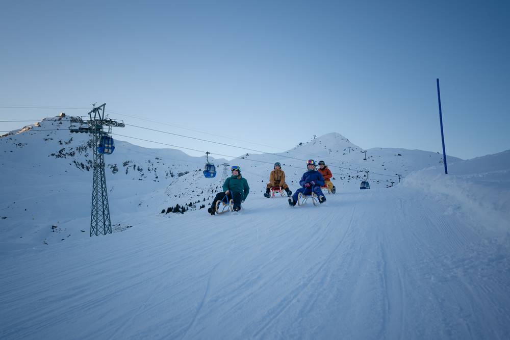 Unrivalled fun in the snow - for once not on skis or snowboard and only from the evening hours. From Tschuggen, the floodlit toboggan run takes you back down to the valley at breakneck speed.