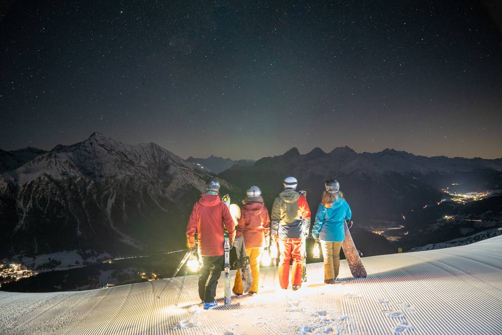 When the lights on the mountain go out in the evening, it gets warm and cosy in the Piz Scalottas mountain restaurant. Enjoy a delicious cheese fondue on the mountain. With a lantern in your hand, you ski back down to the valley under a starry sky.