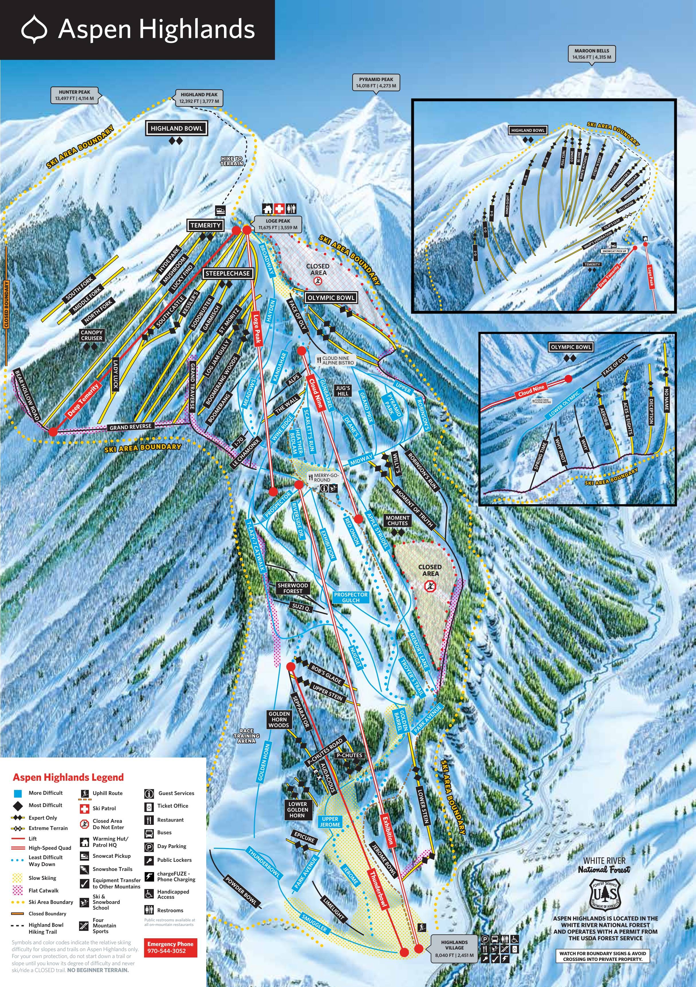 Highlands Village (0.2 km), Aspen (5 km) Towns/villages at the ski resort