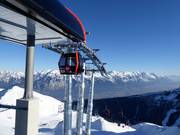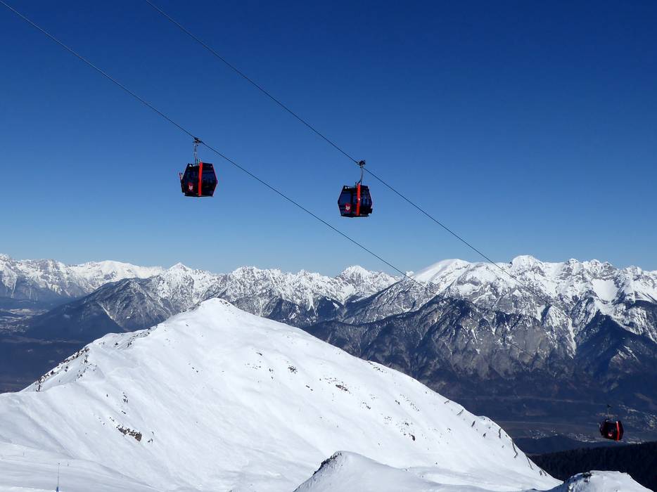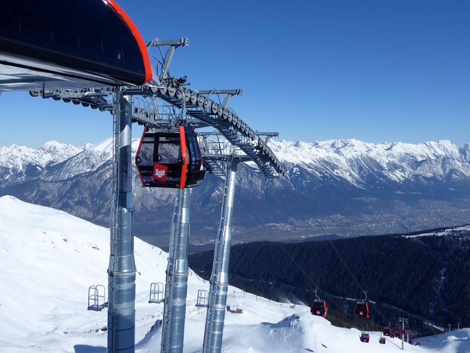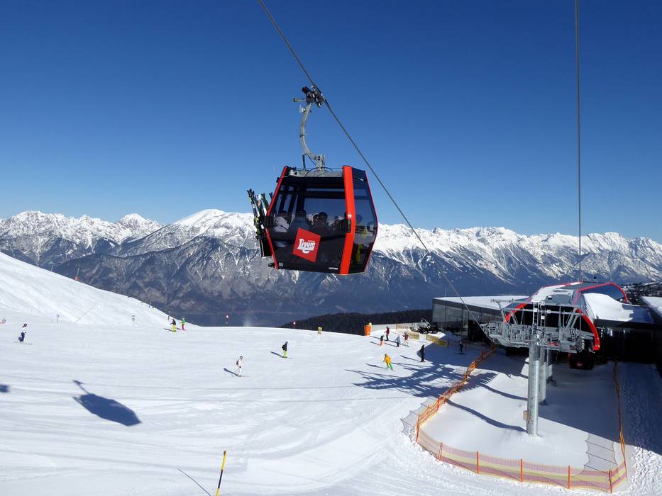 The new Hoadlbahn II replaces the 2-seater chairlift Hoadl II and runs from the mid-station at 1,981 m, below the Sunnalm, up to the Hoadl sun plateau. The modern 10-seater gondola operates in two sections from the valley station at the parking lot, via a mid-station, up to the Hoadl-Haus (2,340 m). During the ascent, you can enjoy a beautiful view of Innsbruck and the Kalkkögel mountains. This makes the magnificent slopes in the Axamer Lizum ski area even more convenient and faster to reach.