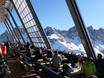 Fascinating views of the mountains or the Inn Valley. In suitable weather, the outer window front is raised: total panorama – a wonderful place to eat and the largest covered sun terrace in Austria. The building won the ISR Architecture Award in 2009. It features a self-service restaurant with a wide variety of options and 600 seats, as well as a small à la carte restaurant.