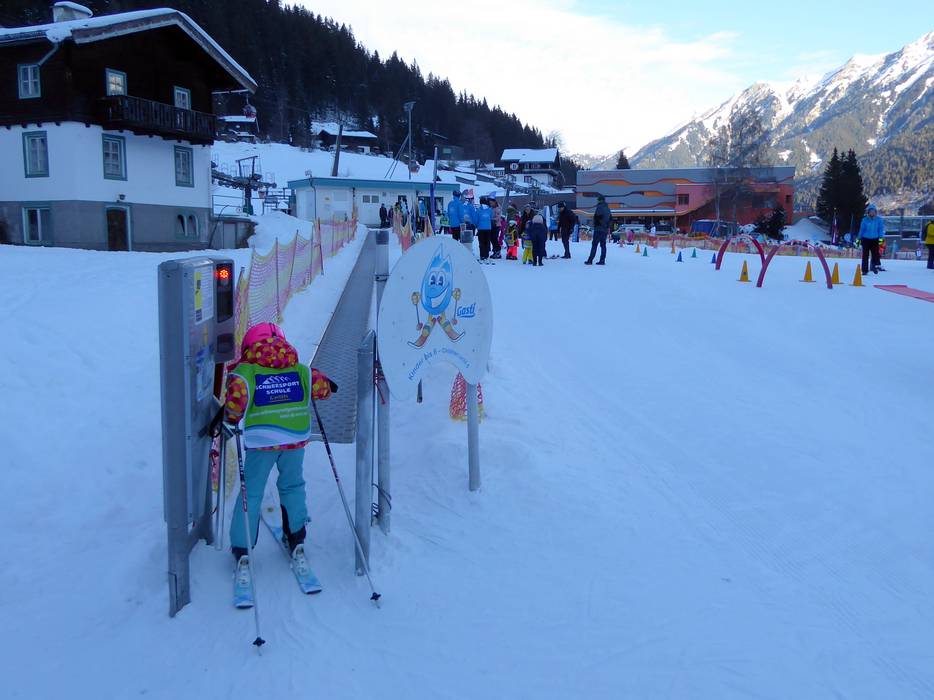 The practice area is located right next to the valley station in Bad Gastein on the Buchebenwiese. Conveyor belts, practice lifts, and ski school offers are ideal for beginners.
