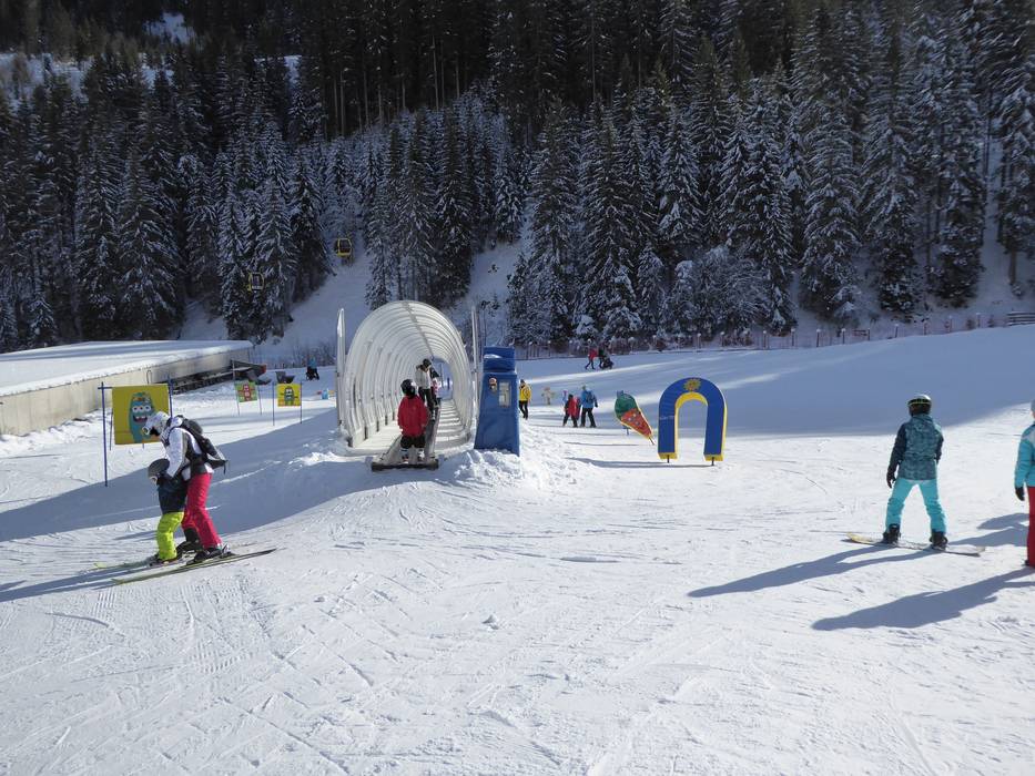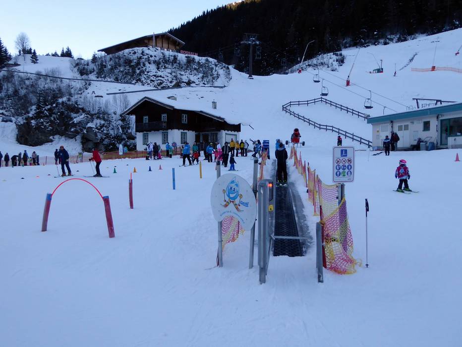 The Schlossalm Ski School operates a lovely children's area in the valley in Bad Hofgastein, featuring conveyor belts and many fun figures, located opposite the Schlossalmbahn.