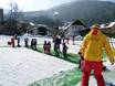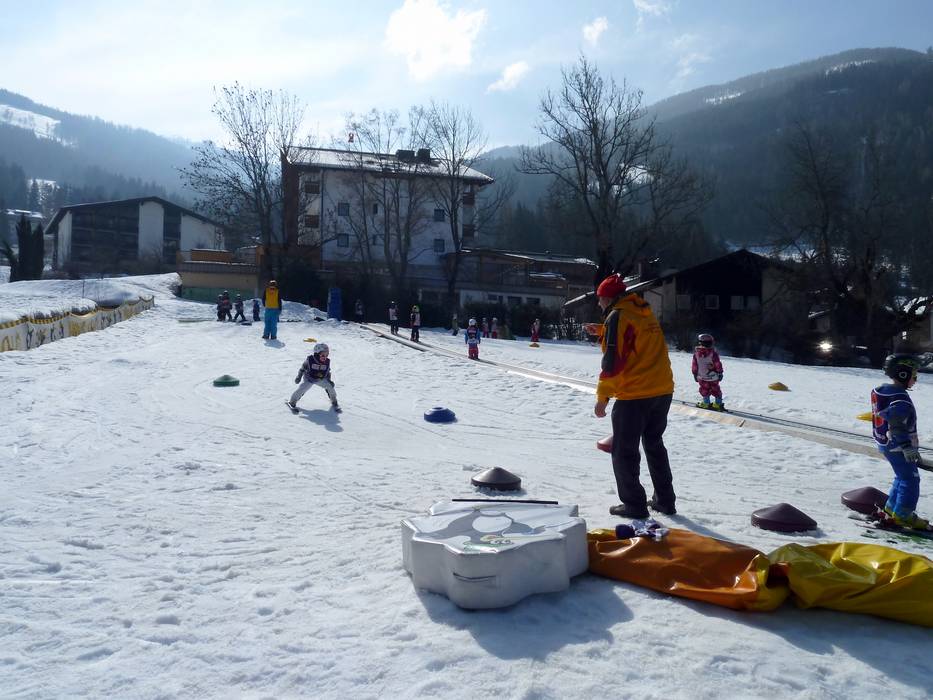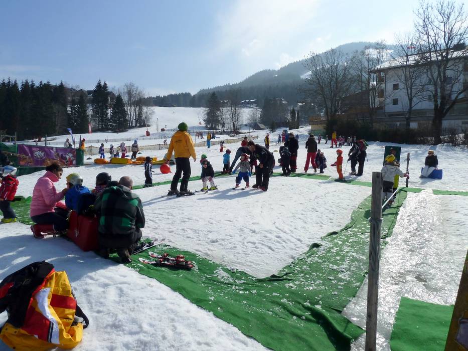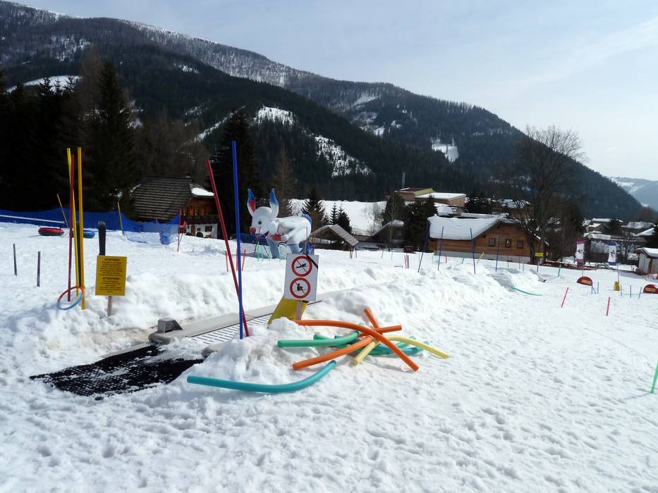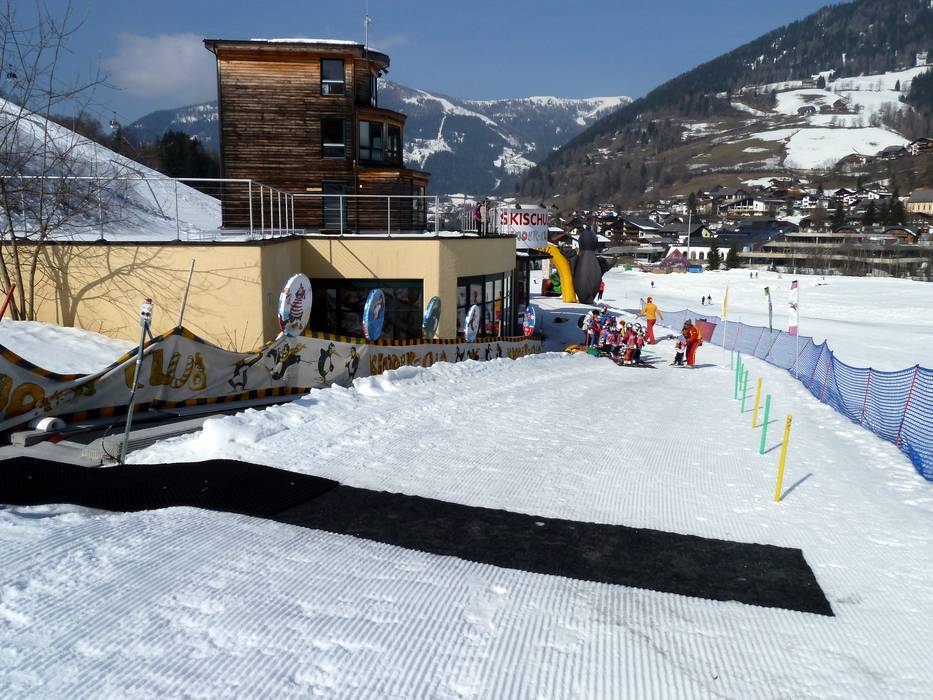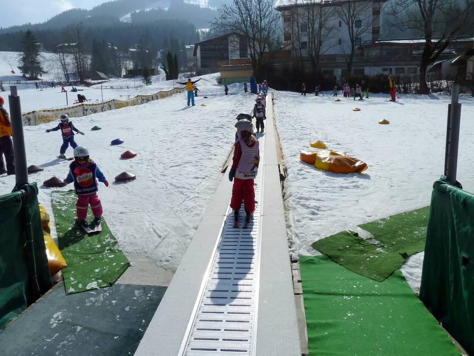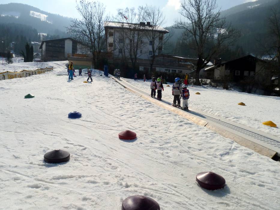 At the valley station of the Kaiserburgbahn, you will find the Kinderland of the Skischule Brunner with two SunKid conveyor belts.