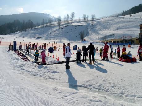 Bad Kleinkirchheim and St. Oswald are very family- and child-friendly. Both locations offer several children's areas and practice lifts. Thanks to the many family-oriented offers, the ski resort is an attractive travel destination. In Bad Kleinkirchheim, there is the Familien €uro, which means that families receive a ski pass for children for only one euro per day after a certain number of ski days. At the mountain station of the Nationalparkbahn Brunnach, you will find the play terrace at NockIN with Nocktubing, magic sled rides, and a toboggan hill. The toboggan runs are also always very popular with the little ones.