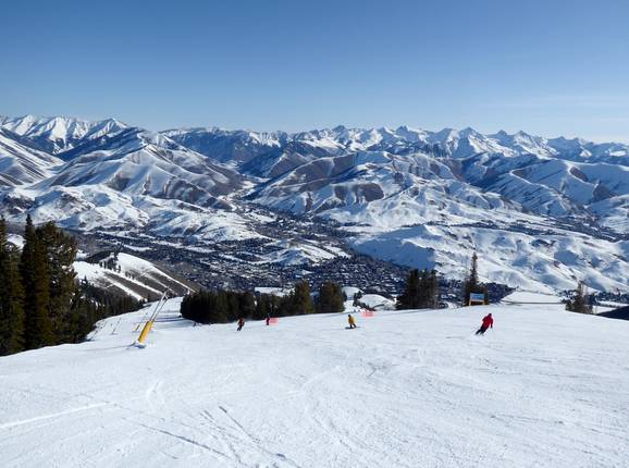From the summit of Bald Mountain, fantastic runs lead down various mountain slopes into the valley. Slopes of all difficulty levels mostly wind through forest clearings. While skiing and snowboarding, you are always treated to the magnificent panorama of the Sawtooth Mountains. In addition, you are usually rewarded with good weather, as the sun shines in Sun Valley on 120 out of 150 ski days.