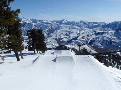 At Bald Mountain in Sun Valley, there are two small snow parks. The Bald Mountain Terrain Parks are located in the upper area of the ski resort. About 4 kilometers away, at the Dollar Mountain ski area, you will find several top-class snow parks that leave nothing to be desired.