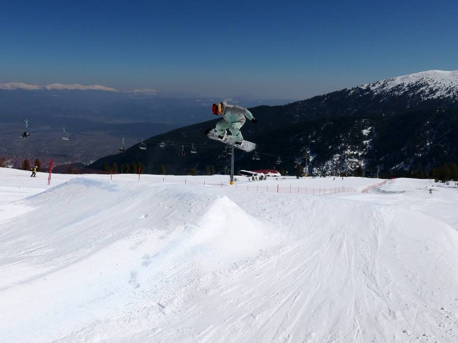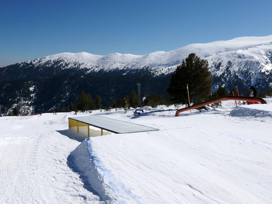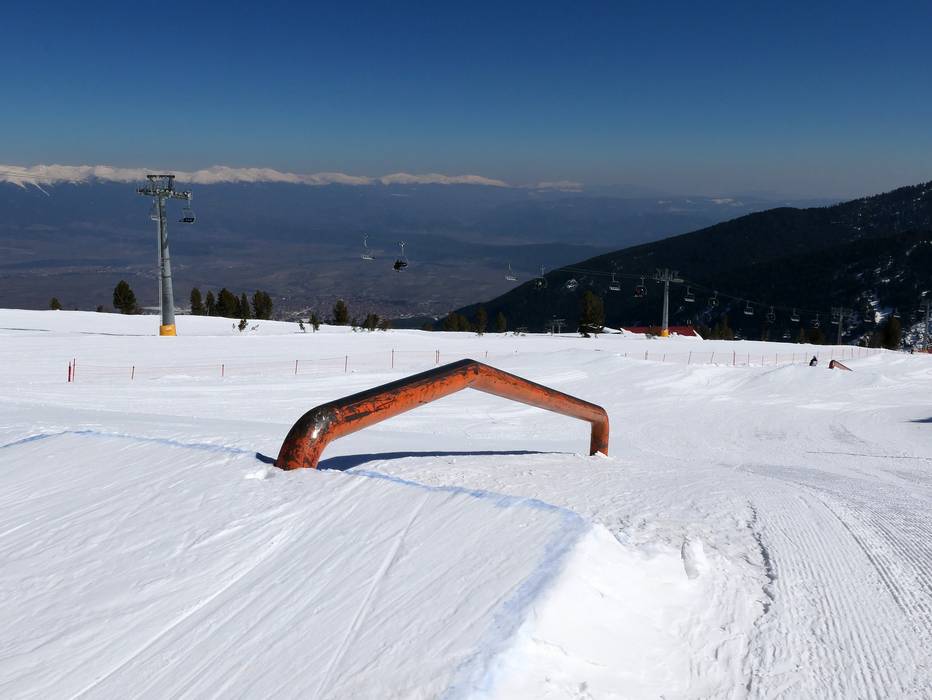 The snowpark is sun-drenched and located at the Plato chairlift. Large and small kickers, boxes, and rails provide adrenaline for both beginners and pros.