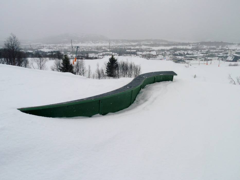 The snow park at Beitostølen is located at the Kjelkeheisen platter lift and offers several jumps, boxes, and rails.