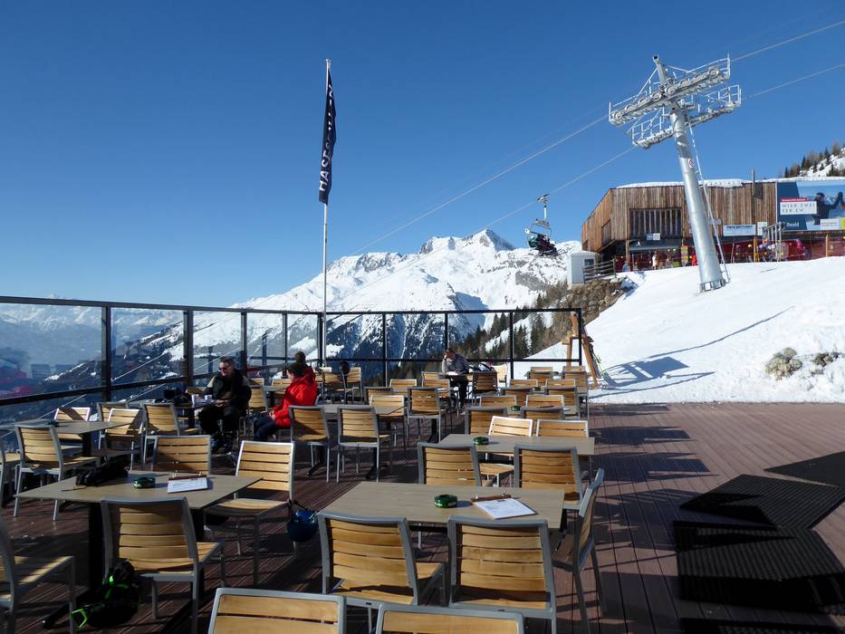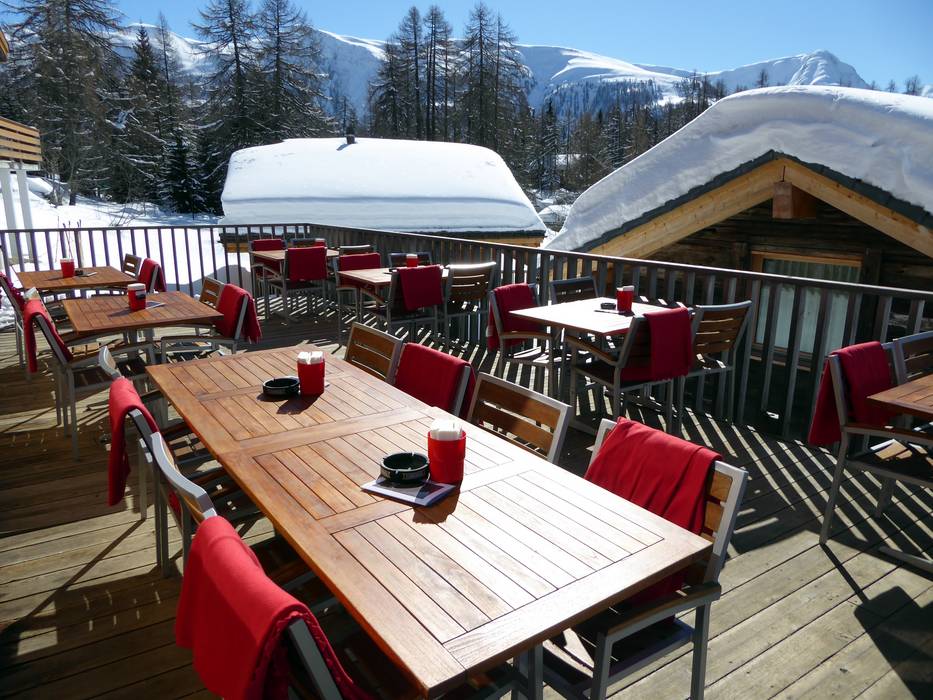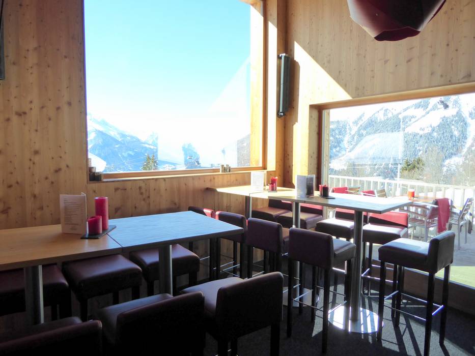 Der Hasestall (mountain restaurant Fleschen Bellwald) offers a serviced area upstairs and a self-service area downstairs. The high-quality furnishings and the beautiful view from the sun terraces invite you to linger. The cuisine is regional and features Swiss specialties. The Hasestall Bar provides a lovely setting for a drink before heading down the valley run.