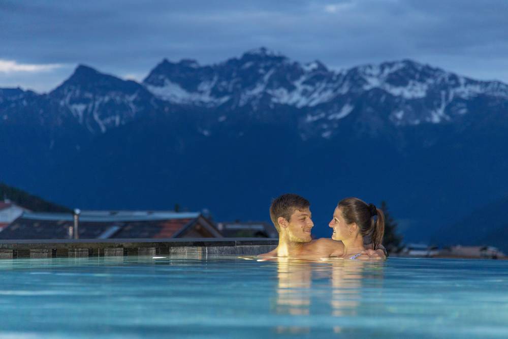 Our wellness area, featuring a 23-meter heated saltwater infinity pool (indoor and outdoor) with views of the nearly 4,000-meter-high Ortler and our sauna area, promises relaxing moments after a winter’s day.