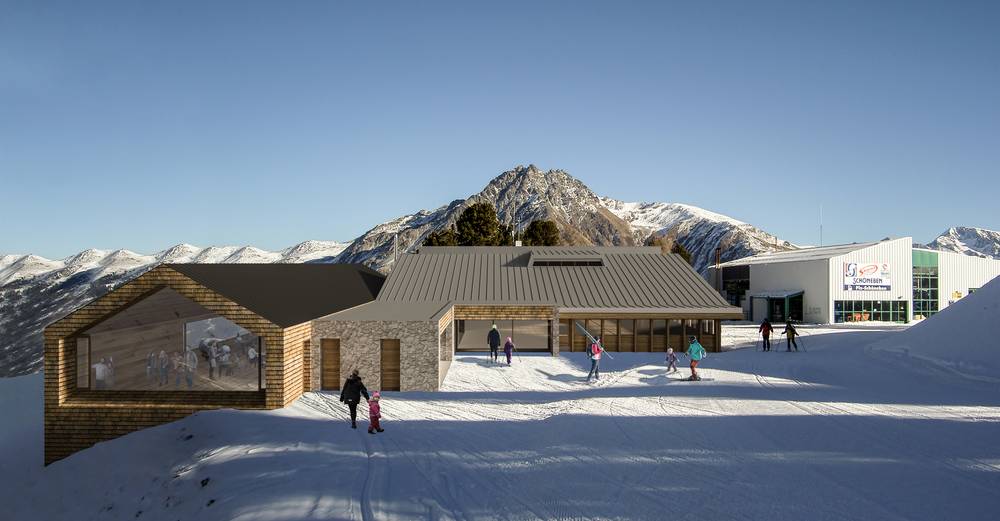 Expansion and renovation of the Schönebenhütte as well as renewal of the sun terrace and umbrella bar.New pists in Rojen
