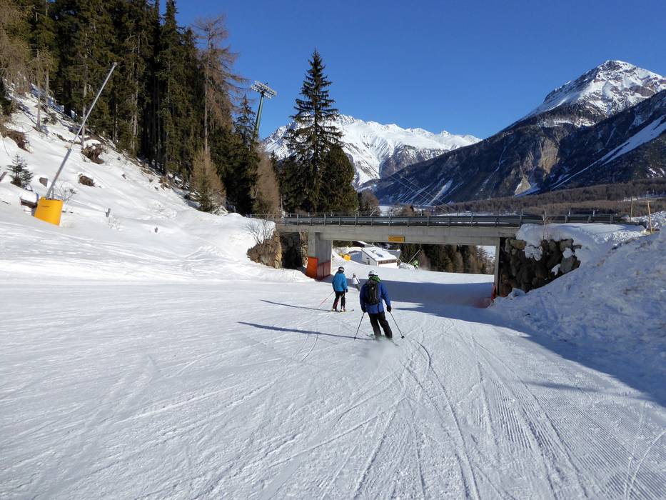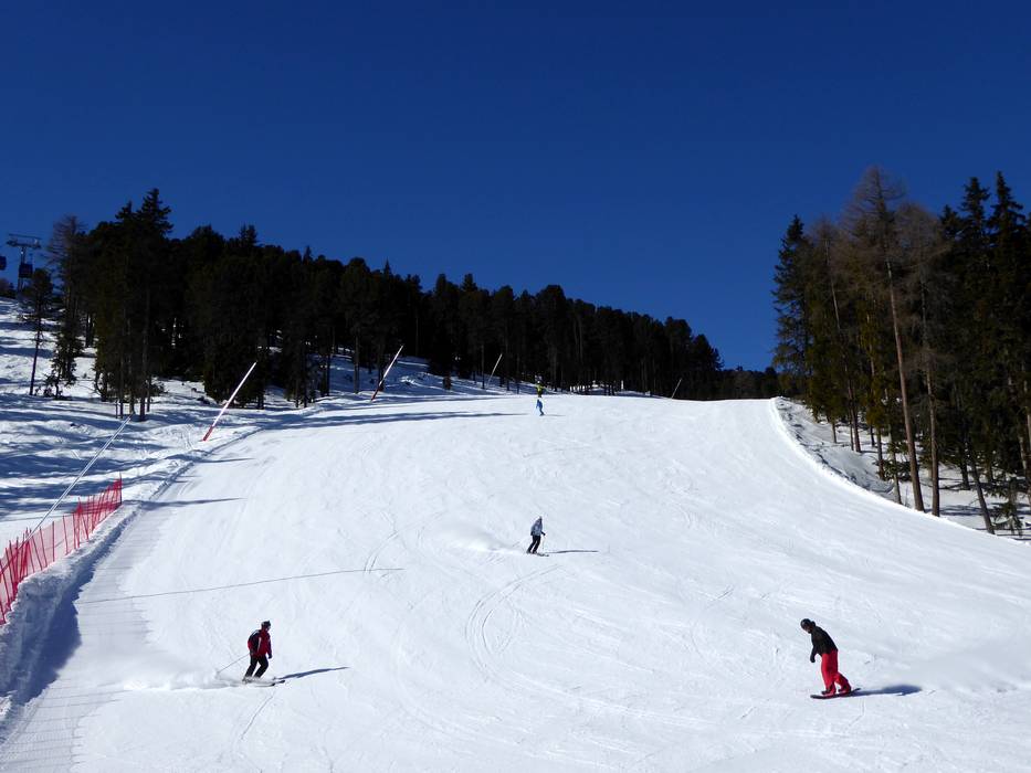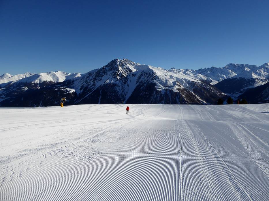 Snow-covered valley runs lead all the way to the base stations in Reschen and St. Valentin.