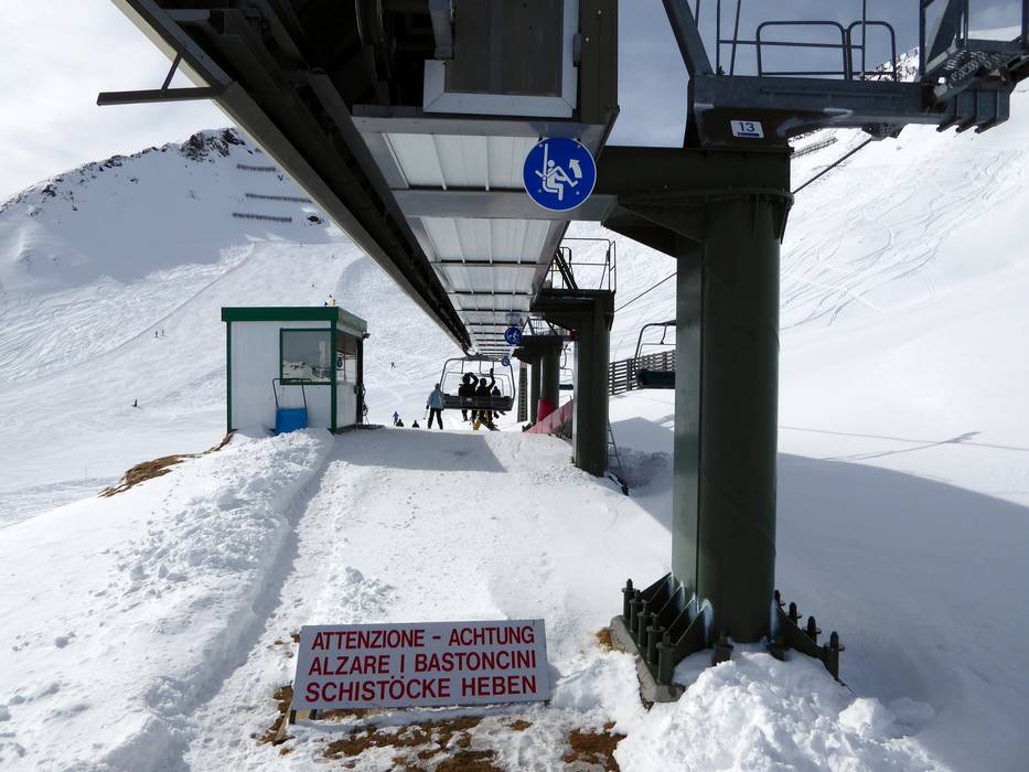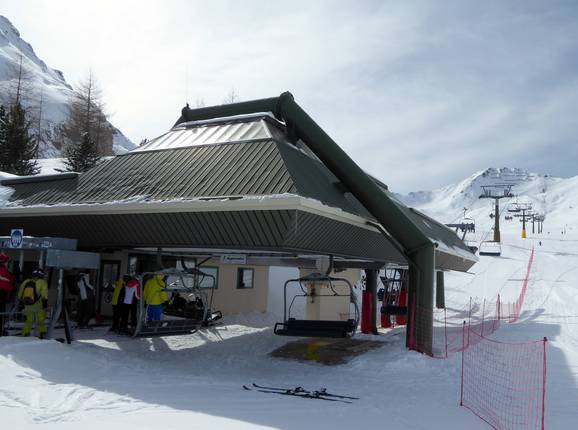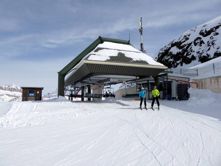 The 4-seater chairlift Sella Brunech has a mid-mountain station on the mountain side.
