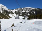 The new, child-safe 6-seater chairlift Thanellerbahn replaces the lower section of the Thanellerkarlift in Berwang. The mountain station is located at the mid-station of the new 10-seater gondola lift Obere Karbahn, providing a connection to the Obere Karbahn II.