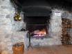 Rustic and cozy hut with an open fireplace and an inviting menu.