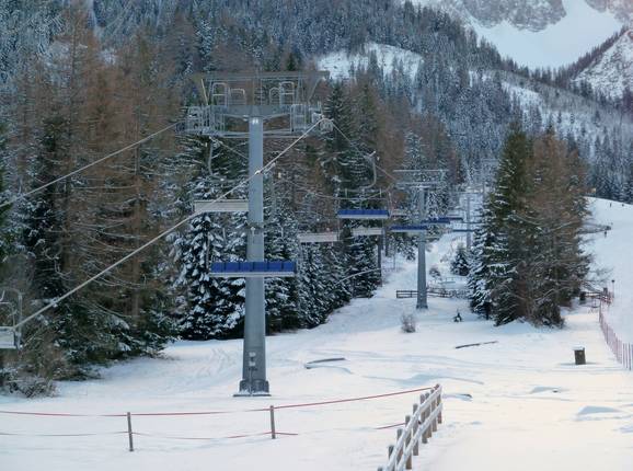 The lower section of the slopes (blue valley run) is served by a modern six-seater chairlift. A double chairlift leads to the Marienbergjoch, and there are also three drag lifts.