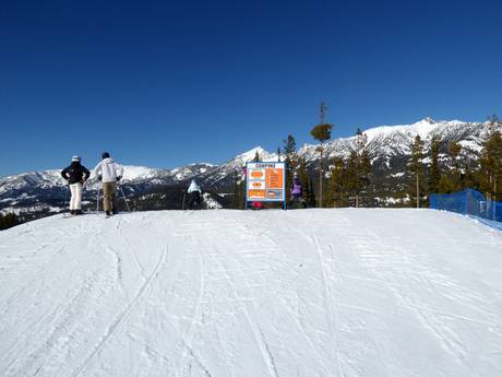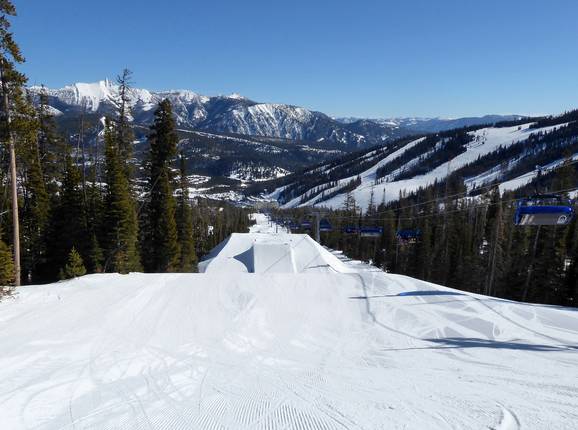 At the 6-seater chairlift Swift Current Express and the 10-seater gondola Explorer, you will find several attractive snow parks: Swifty Park (L), The Cache (M), Explorer Park (S), Wolf Pup (XS), and Maverick (M). From the mountain station, you can ride through several fun parks one after another. Families, beginners, and experts will find everything they could wish for.
