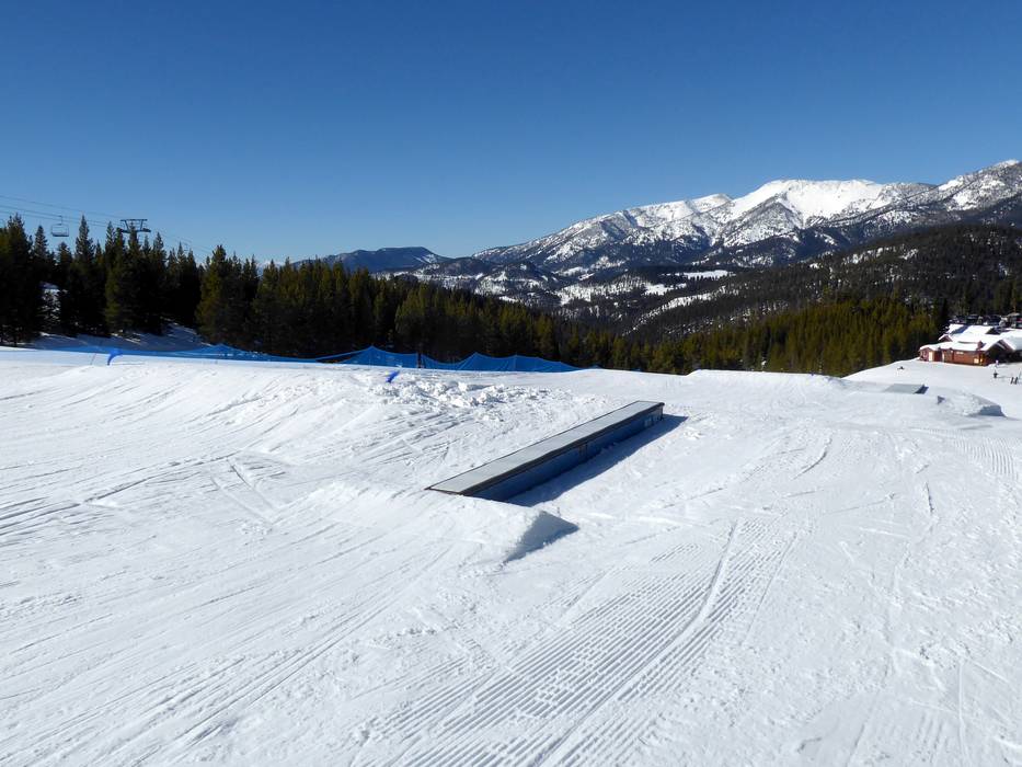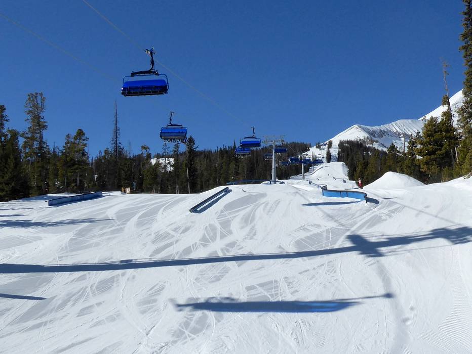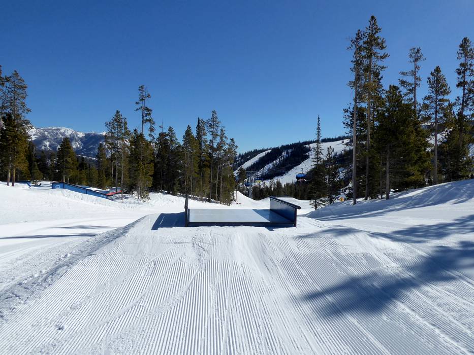 The Cowpoke Park (S) is located at the Madison Base Area and is accessed by the Derringer quad chairlift. The park is ideal for beginners and families. It features easy obstacles and is manageable for everyone.