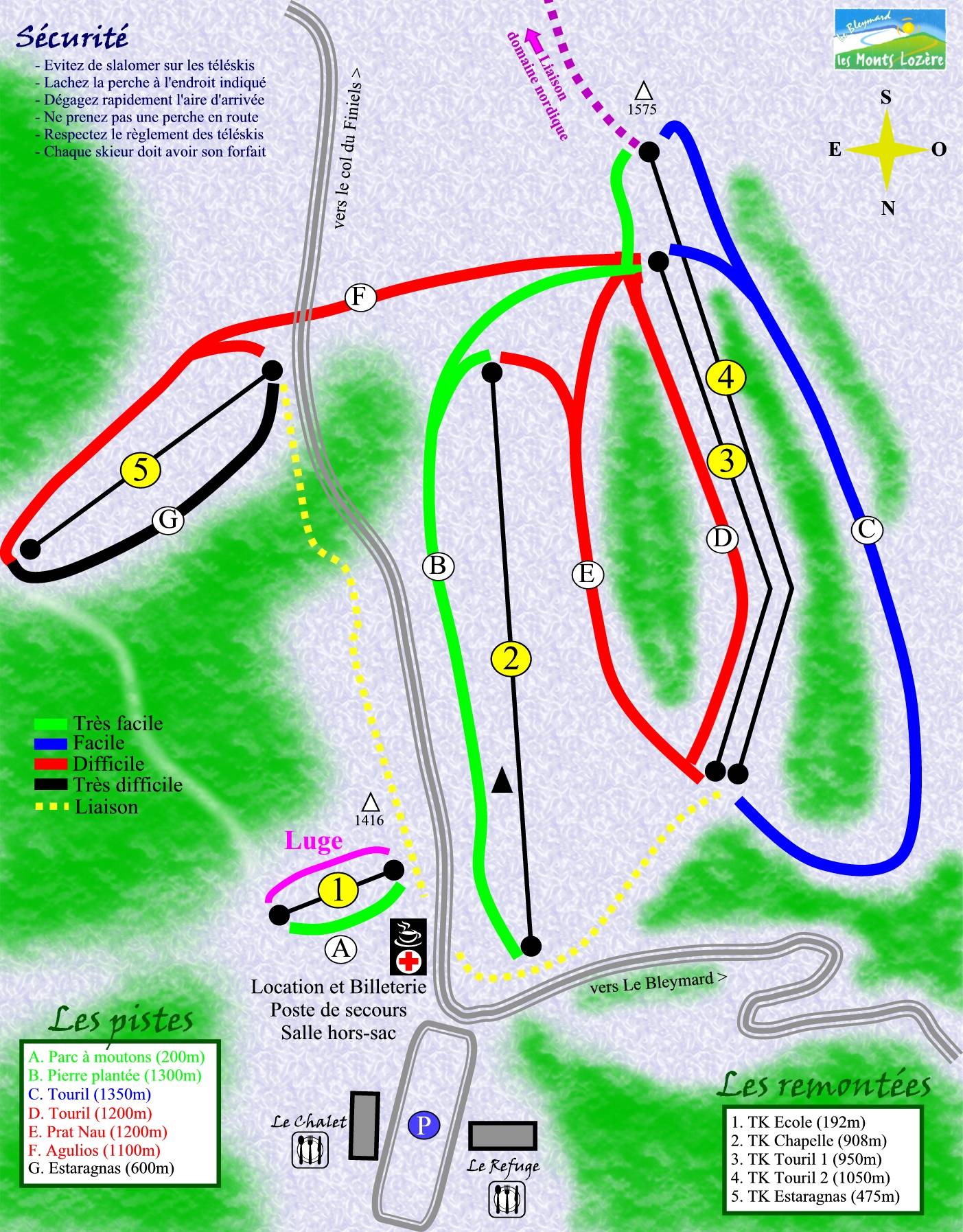 Trail map Bleymard – Mont Lozère Season 2024/2025