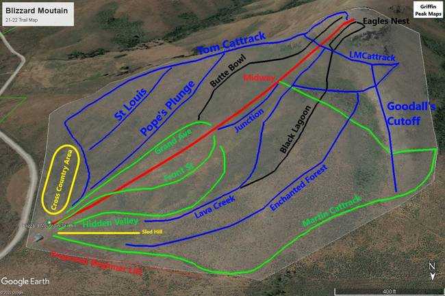 Map showing route: Blizzard Mountain Ski Hill Arco