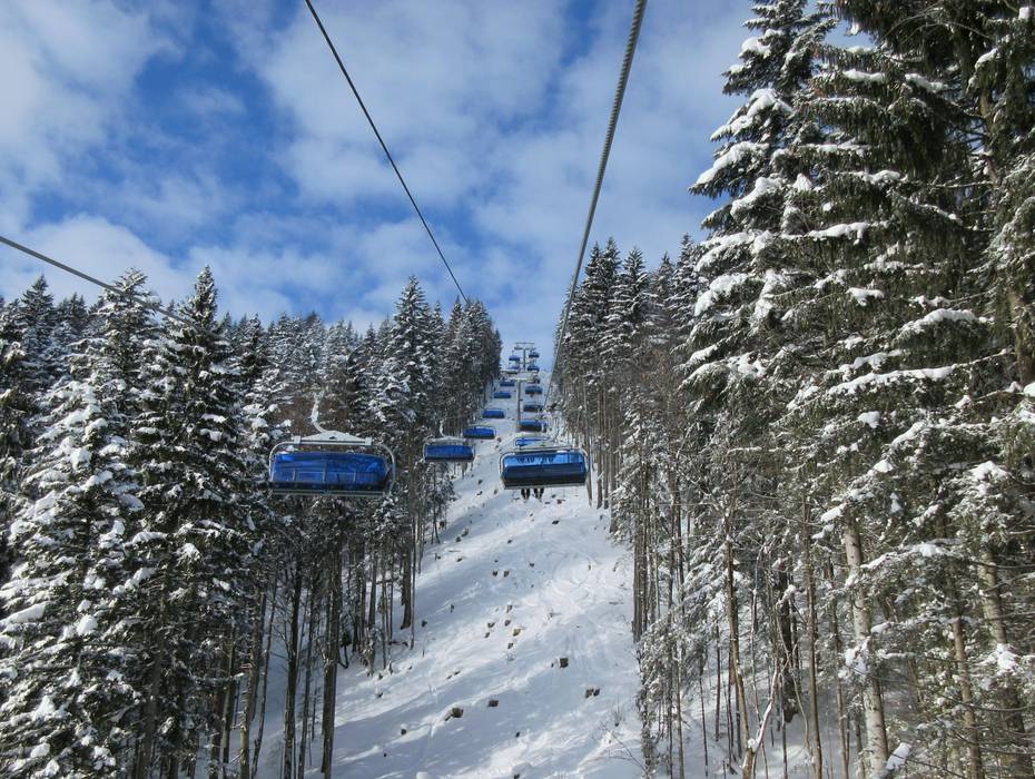 The Milchhäuslexpress offers an entry aid for children, heated seats, and blue weather protection covers. The 6-seater chairlift from Leitner replaces the drag lifts Milchhäusl and Zuckerhütl.