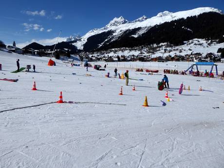 The Swiss Snow Kid's Village is a very large area for children and beginners, featuring a conveyor belt and practice lifts. It is located about 200 meters from the valley station of the chairlift in Brigels. The Brigels Waltensburg Andiast snow sports school offers a comprehensive range of activities for children. Even children under 4 years old can get started in the snow kindergarten through playful activities. Lunchtime supervision is provided. There are lounges and dining facilities. A separate ski pass can be purchased for the area if you want to practice alone with your children.