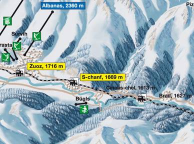 S-chanf (1.5 km) Town/village at the ski resort