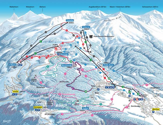 All lifts/cable cars at the ski resort Bürchen/​Törbel – Moosalp