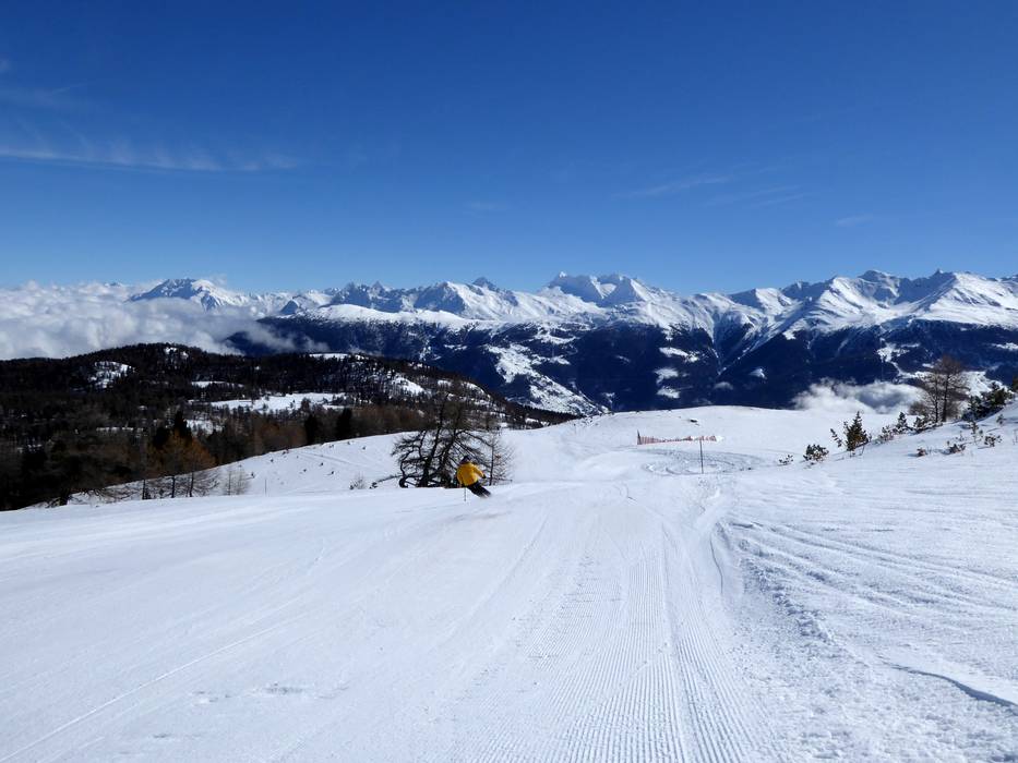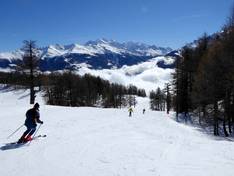 The Bürchen/Törbel ski area mainly offers intermediate slopes and presents itself as a home for skilled and sporty skiers. The variety and especially the length of the runs are very appealing for a ski area of this size. In the area around and above the tree line, you ski on consistently challenging slopes, combined with a spectacular panorama of the Valais mountain world. Easier slopes and beginner areas are mainly found at the entry points to the ski area in Bürchen.