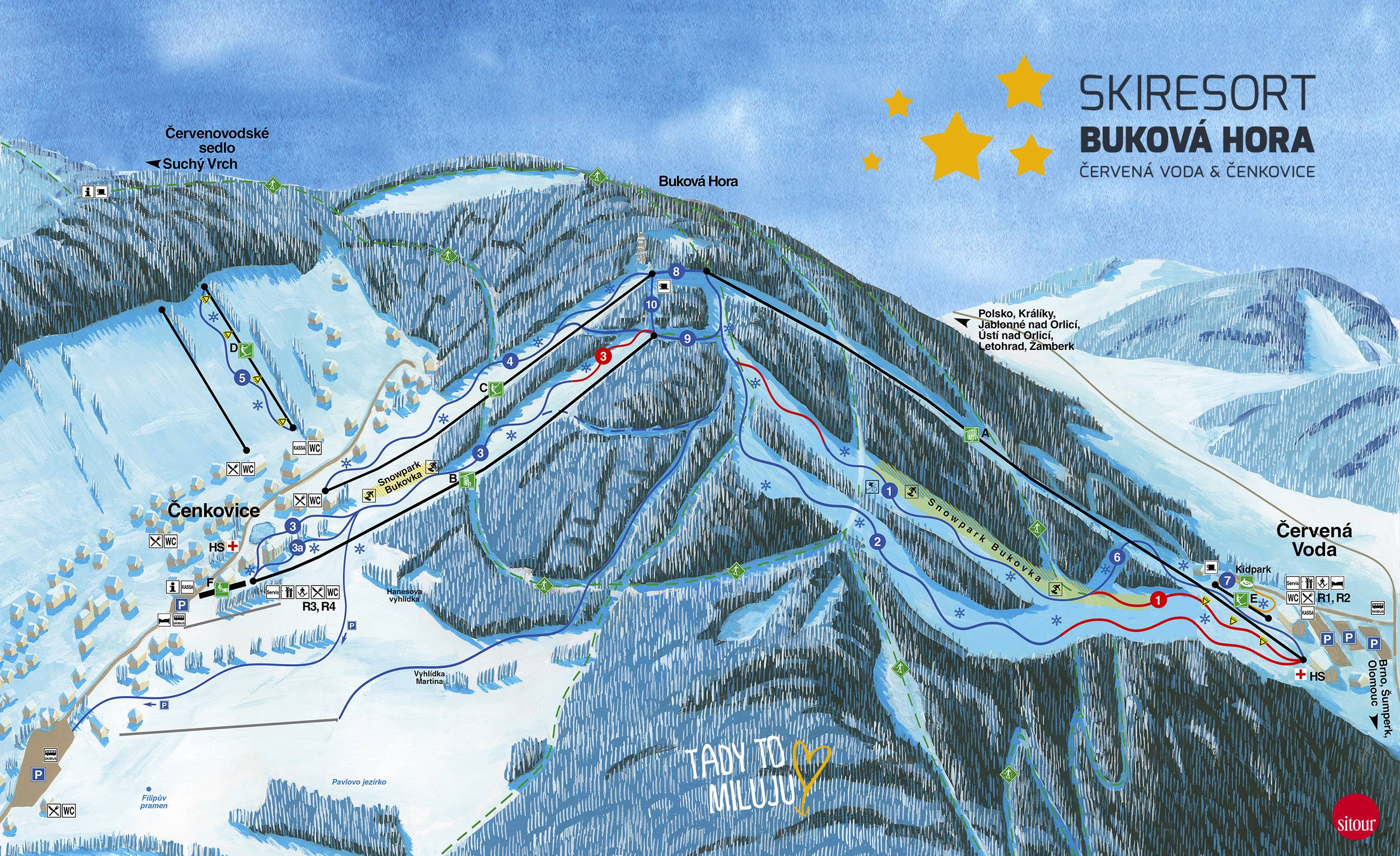 Trail map Buková hora – Čenkovice/Červená Voda Season 2025/2026