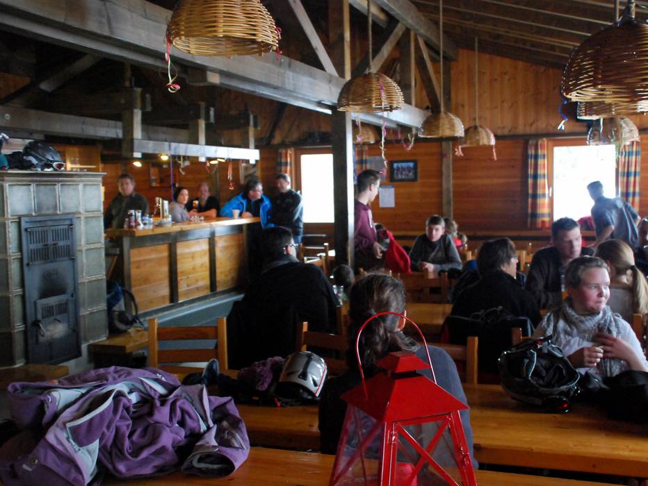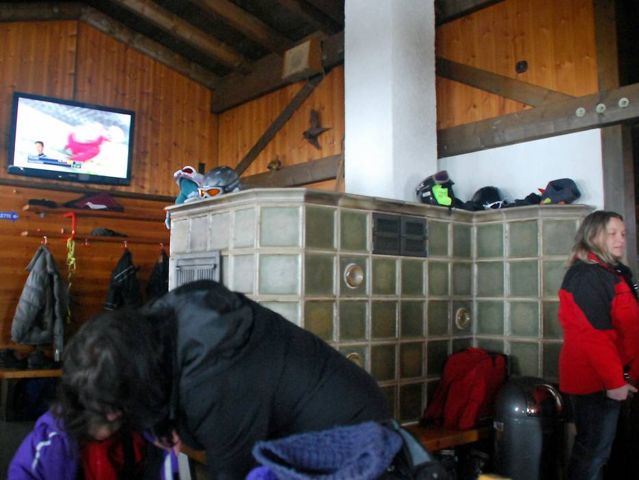 The ski hut is spacious, the large tiled stove creates a cozy atmosphere, and the Ski World Cup is shown on the big screen. The food selection is rather limited, but the prices are family-friendly and the delicious grilled sausages in front of the hut are perfect for a small snack.