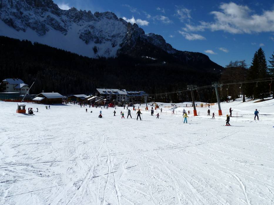 The Carezza Dolomites ski area at the foot of the Rosengarten and above Lake Carezza is one of the sunniest ski resorts in South Tyrol, with an average of 8 hours of sunshine per winter day. All ski slopes, toboggan runs, cross-country trails, and hiking paths lead to common destinations—ideal